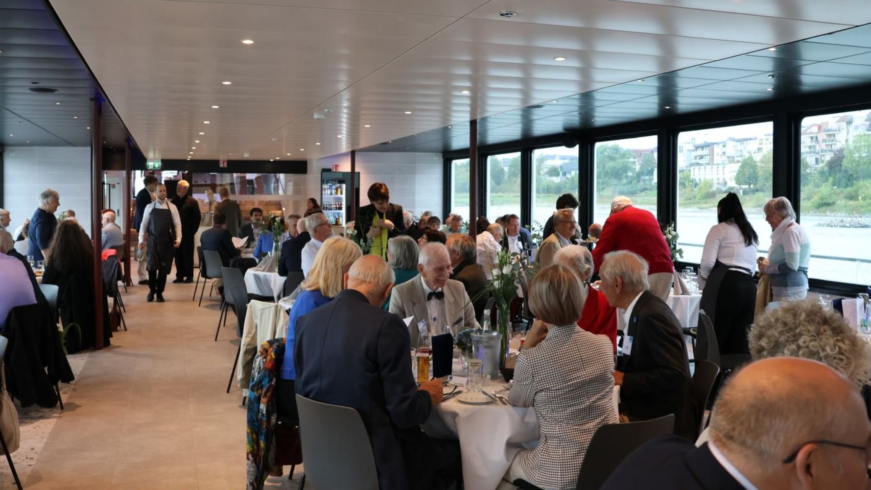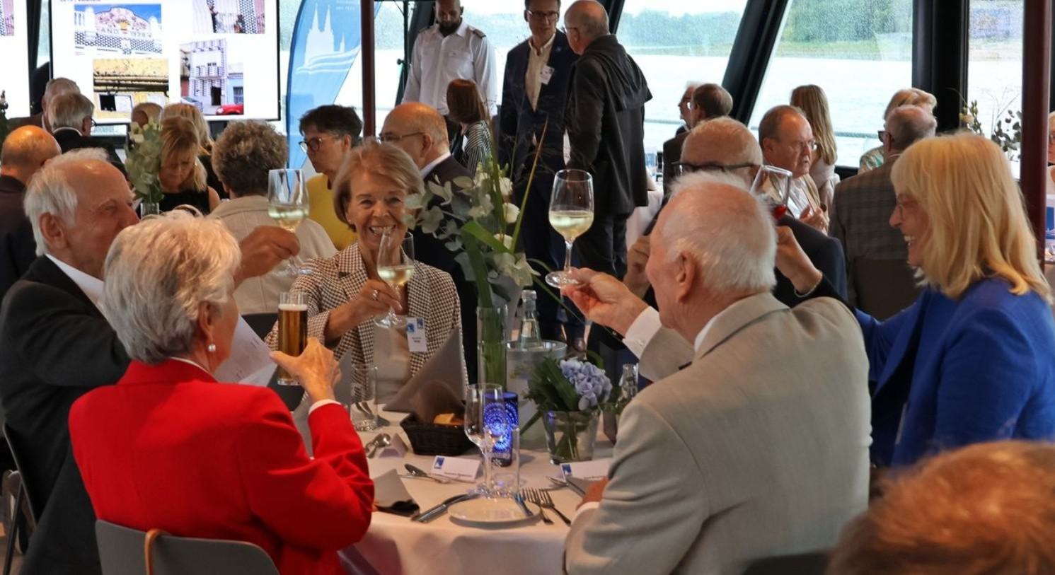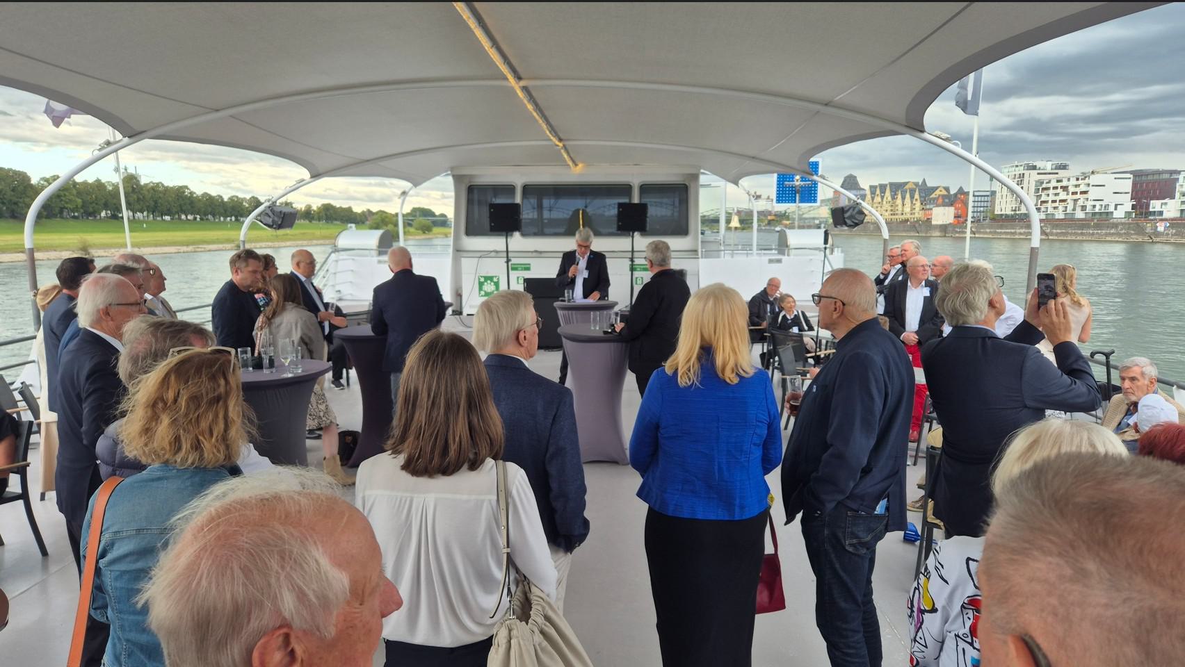 Nach letzten Vorbereitungen und dem Empfang der Gäste startete die Veranstaltung bei einem ersten Getränk an Deck mit den Eröffnungsreden u.a. des Vereinsvorsitzenden Dipl. Ing. Bernd Oxen und des Bürgermeisters Dr. Ralf Heinen als Stellvertreter der Oberbürgermeisterin Henriette Reker.