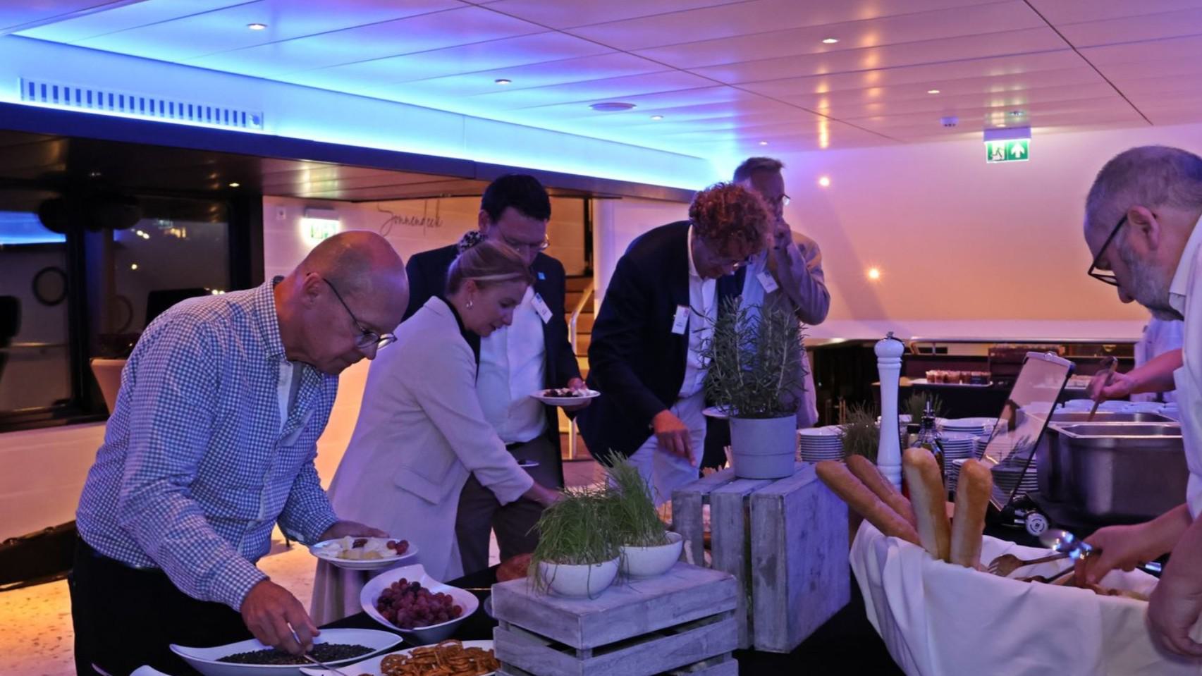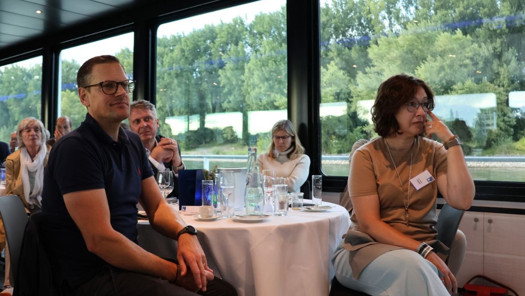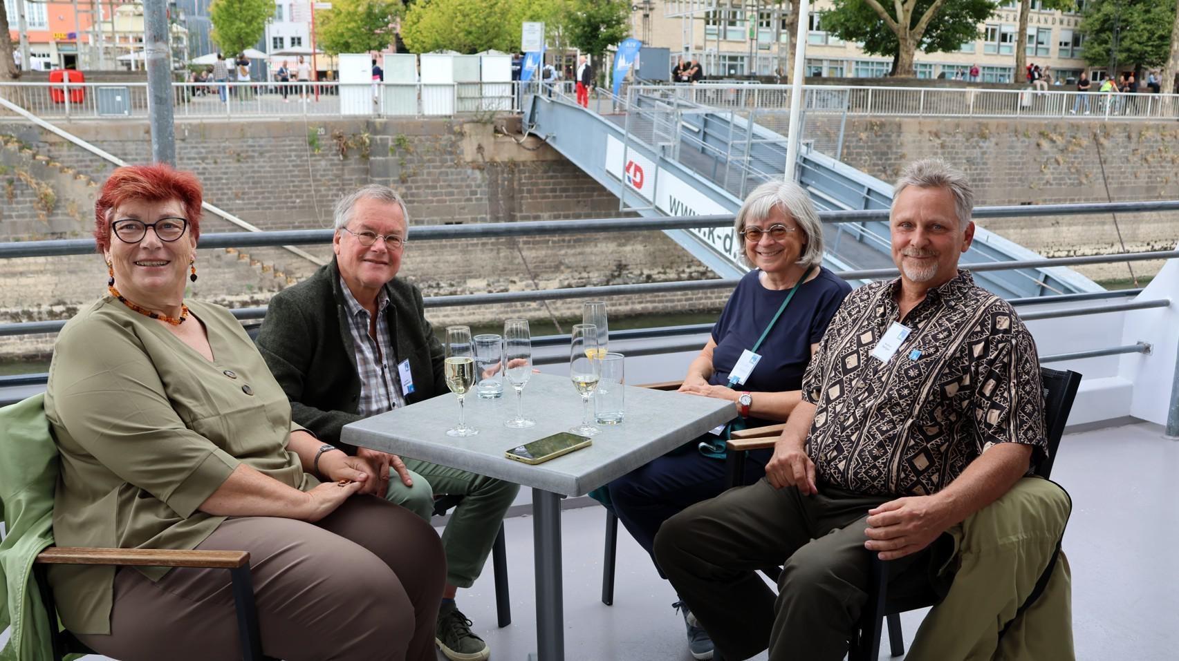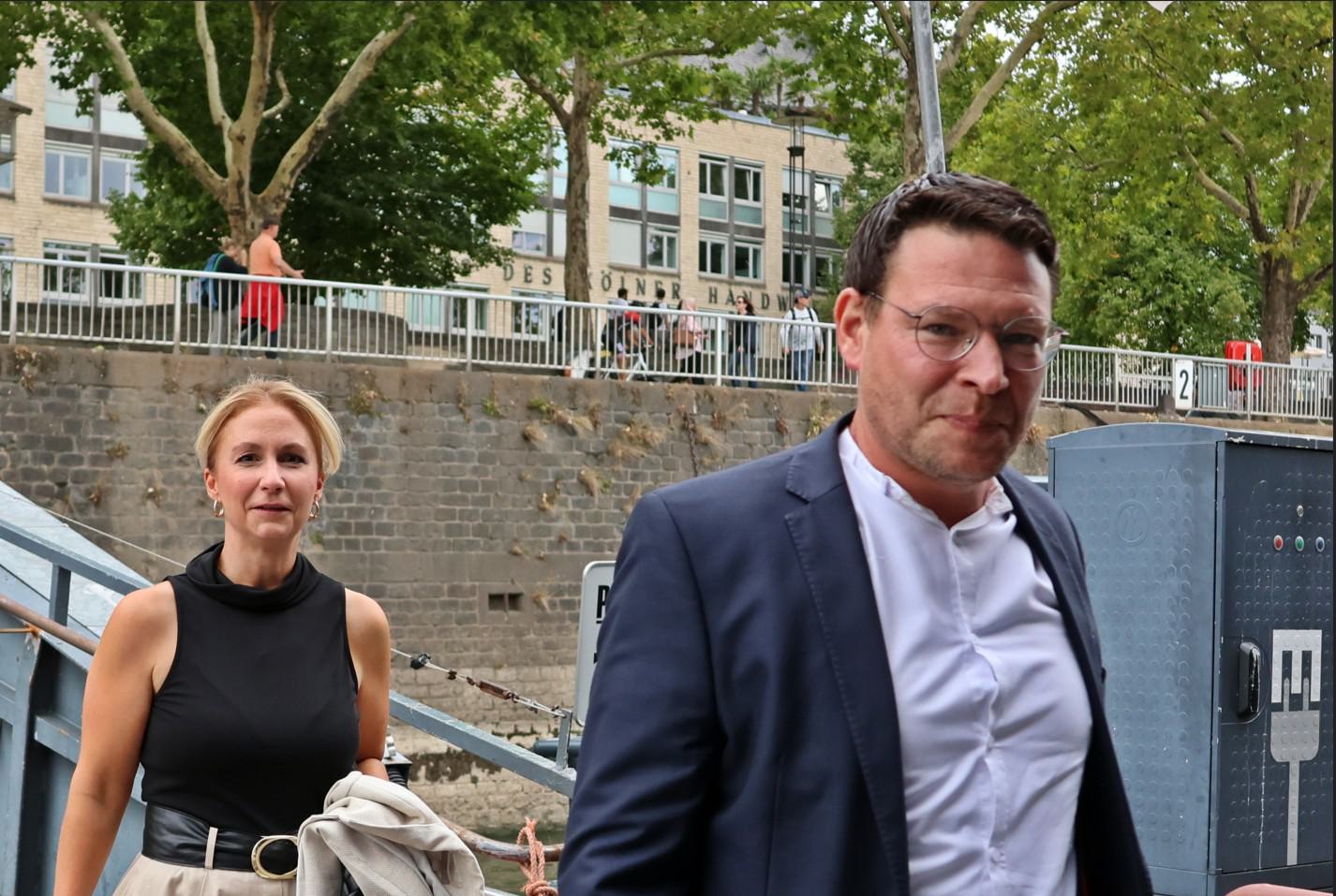 Nach letzten Vorbereitungen und dem Empfang der Gäste startete die Veranstaltung bei einem ersten Getränk an Deck mit den Eröffnungsreden u.a. des Vereinsvorsitzenden Dipl. Ing. Bernd Oxen und des Bürgermeisters Dr. Ralf Heinen als Stellvertreter der Oberbürgermeisterin Henriette Reker.