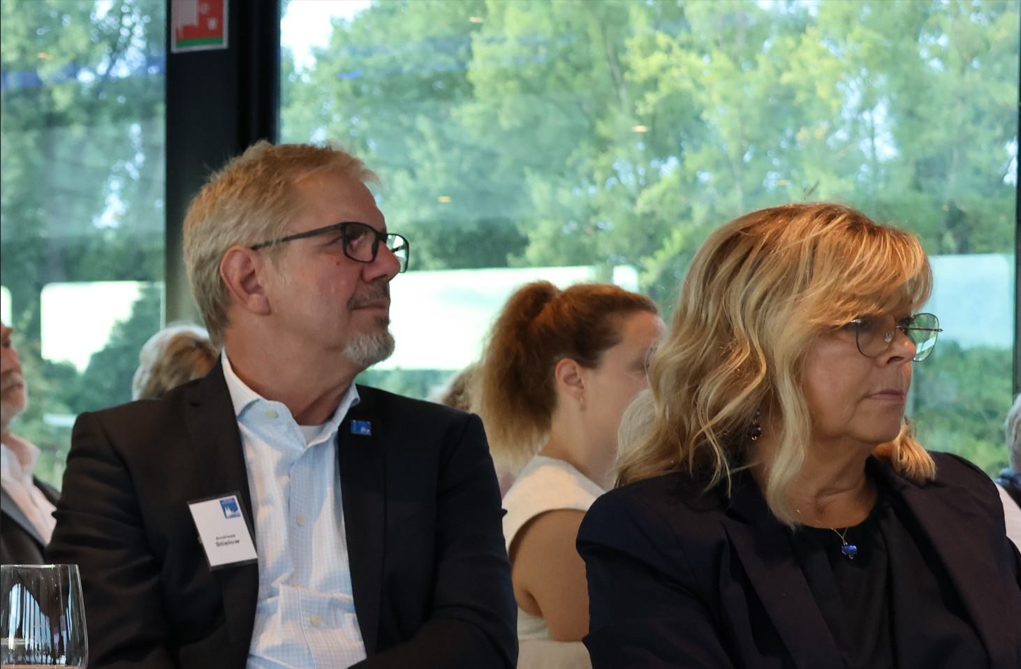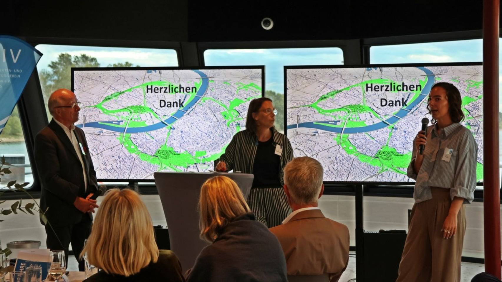 In dem nach dem Abendmenu folgenden abwechslungsreichen Begleitprogramm zur Festveranstaltung moderierte Architektin und Architekturjournalistin Uta Winterhager einen Panel Talk mit dem Architekten Prof. Paul Böhm und Anissa Vogel, Geographin und Expertin für nachhaltige Stadtentwicklung und städtische Resilienz, zum Projekt „Neue Mitte Köln“.