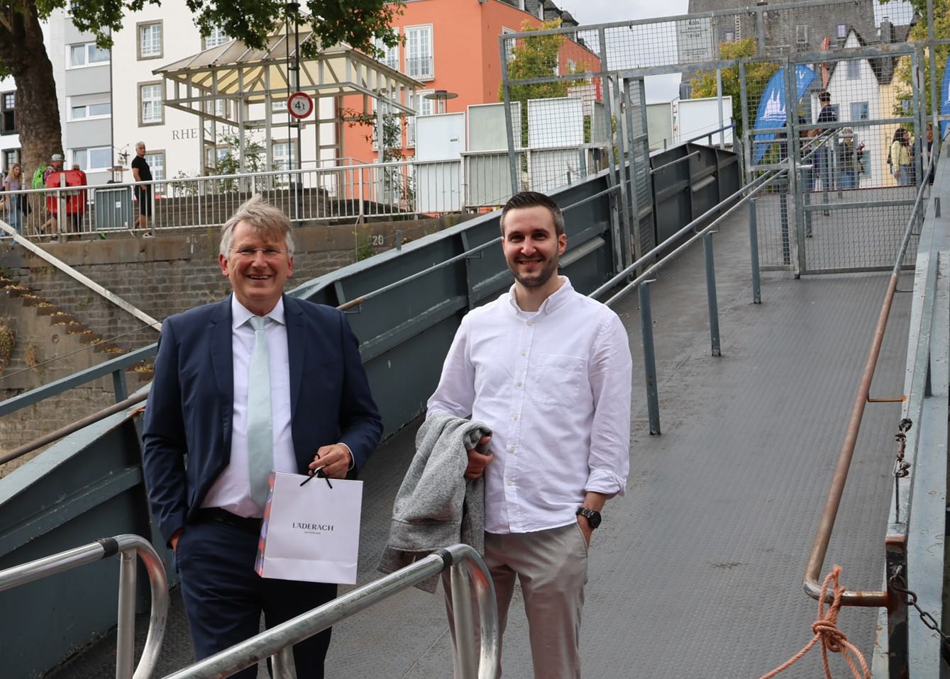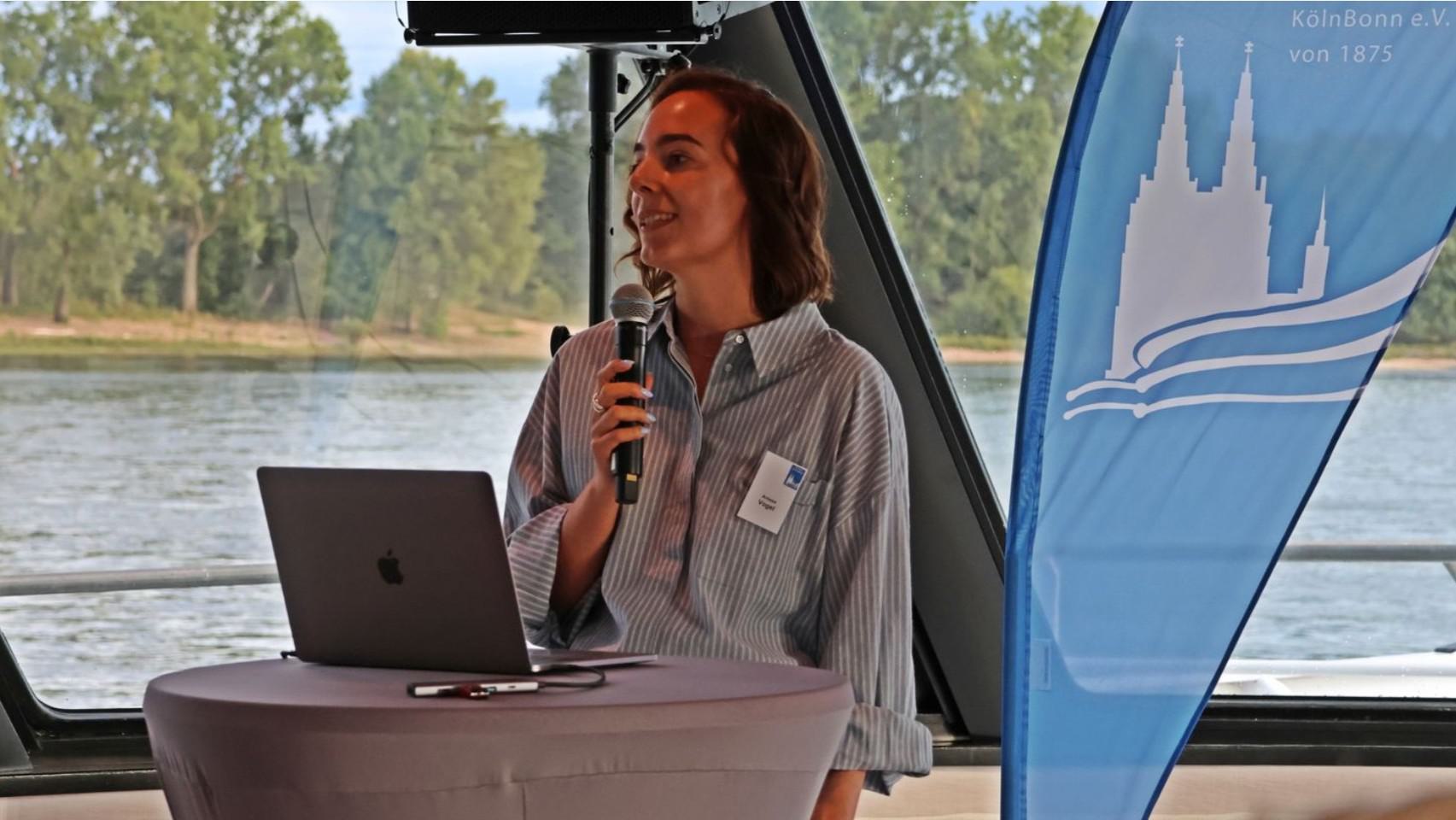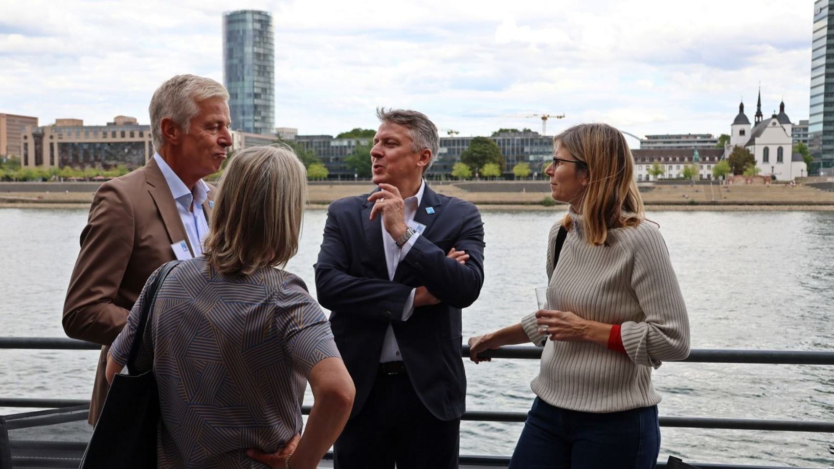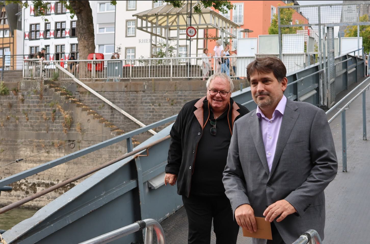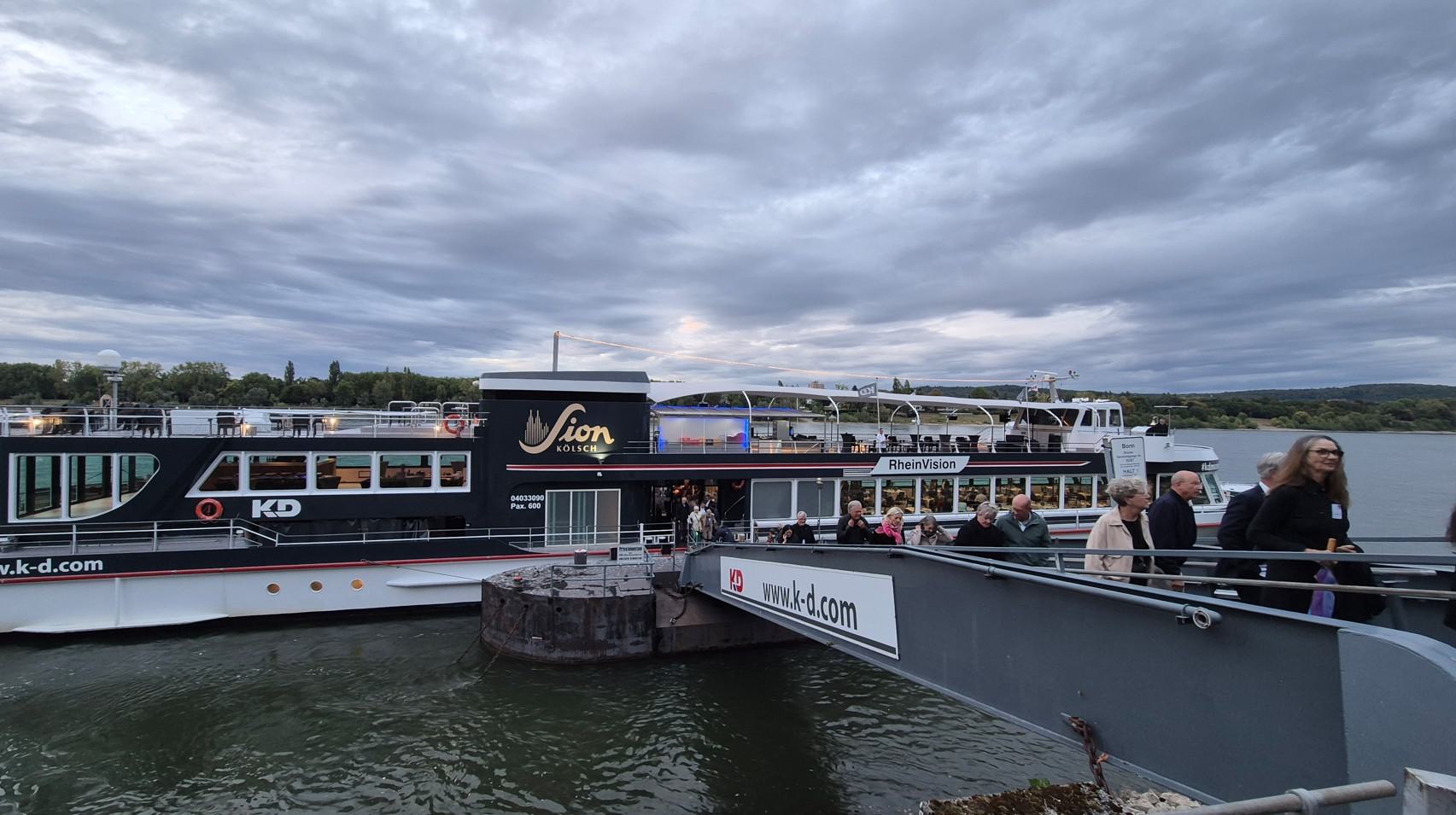 Nach letzten Vorbereitungen und dem Empfang der Gäste startete die Veranstaltung bei einem ersten Getränk an Deck mit den Eröffnungsreden u.a. des Vereinsvorsitzenden Dipl. Ing. Bernd Oxen und des Bürgermeisters Dr. Ralf Heinen als Stellvertreter der Oberbürgermeisterin Henriette Reker.