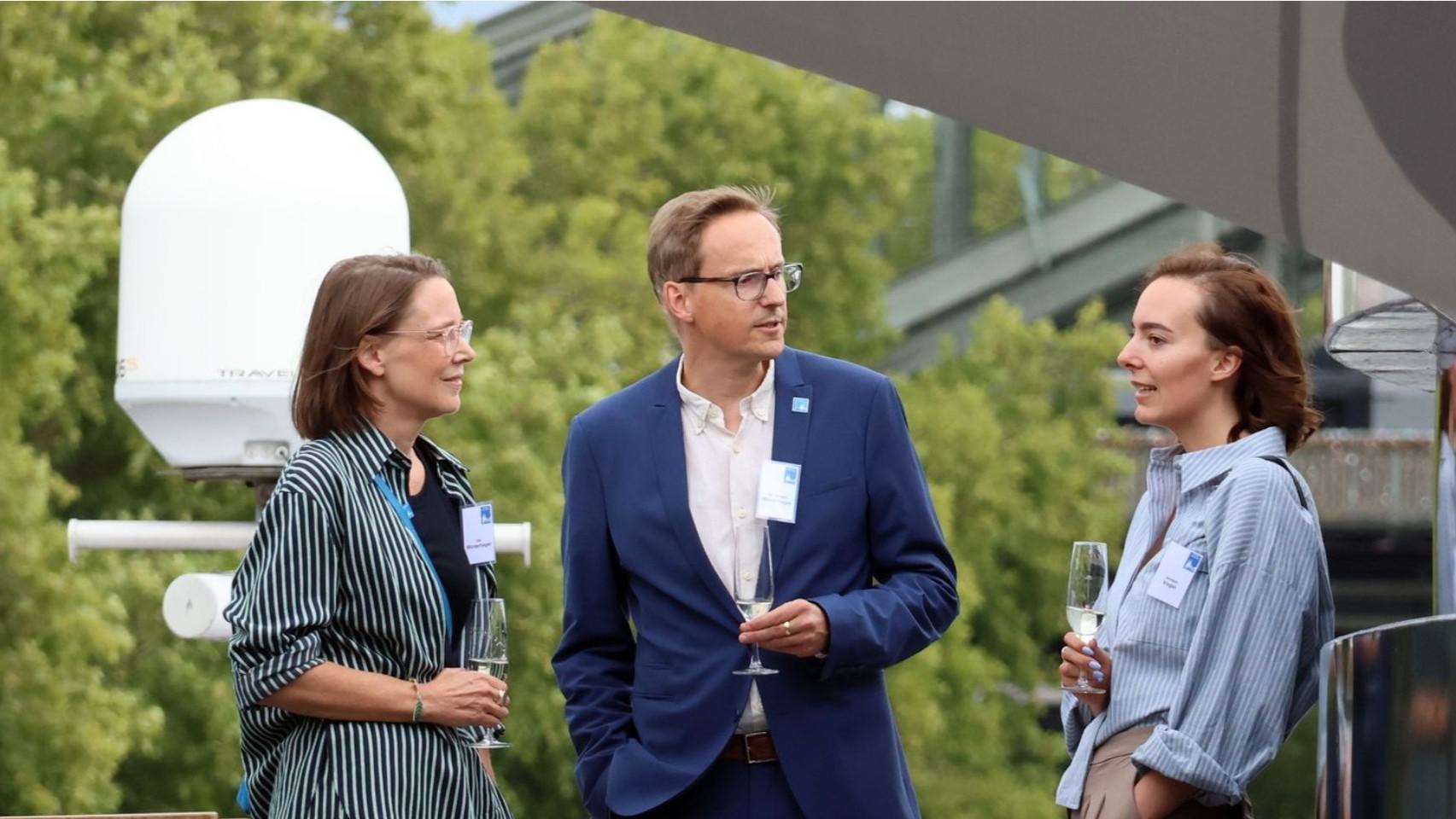 In dem nach dem Abendmenu folgenden abwechslungsreichen Begleitprogramm zur Festveranstaltung moderierte Architektin und Architekturjournalistin Uta Winterhager einen Panel Talk mit dem Architekten Prof. Paul Böhm und Anissa Vogel, Geographin und Expertin für nachhaltige Stadtentwicklung und städtische Resilienz, zum Projekt „Neue Mitte Köln“.